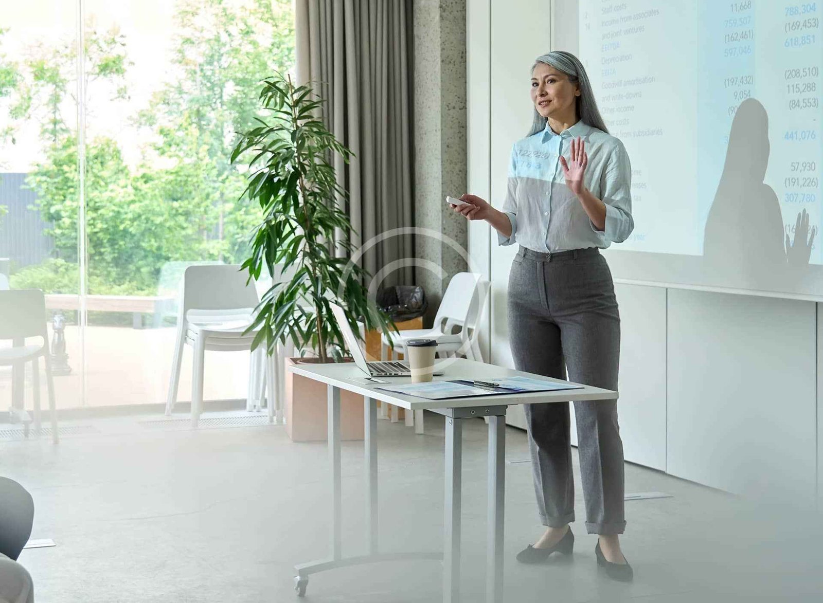 • Curved steel and silent spaces
